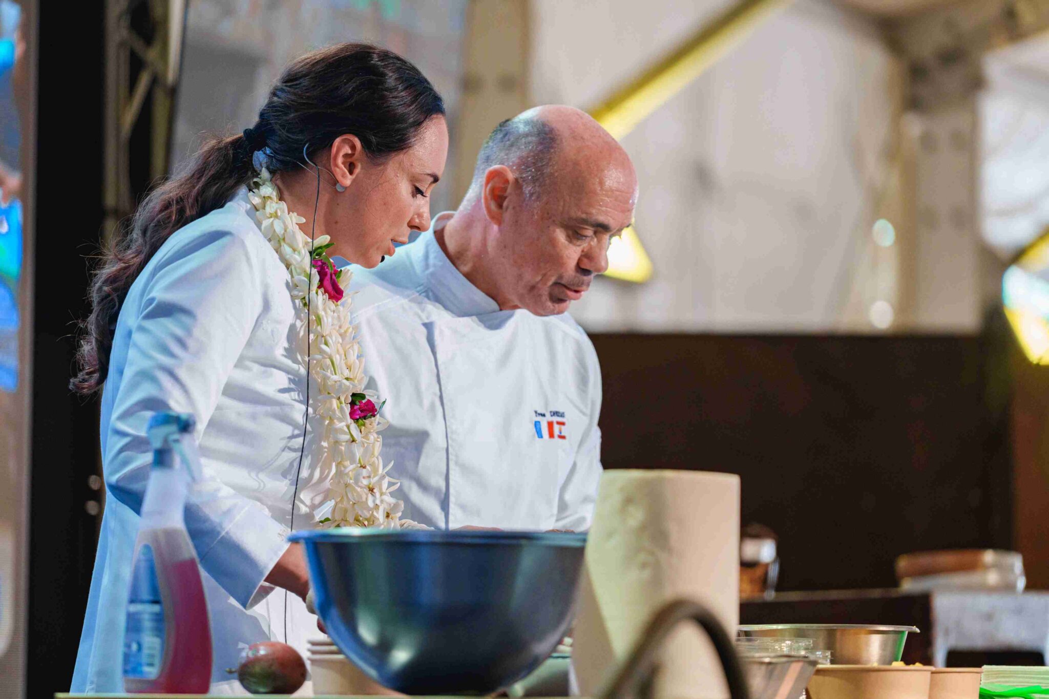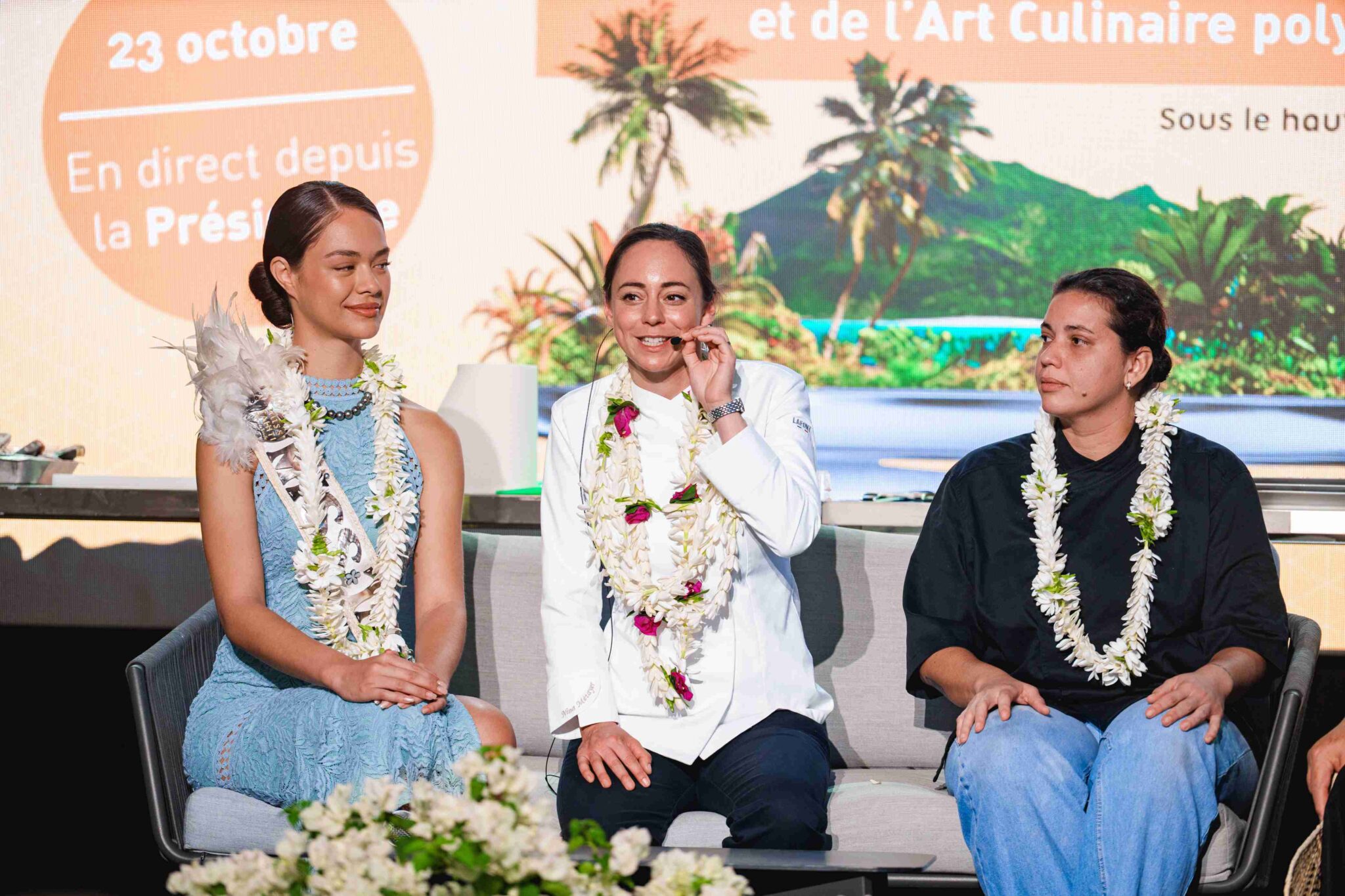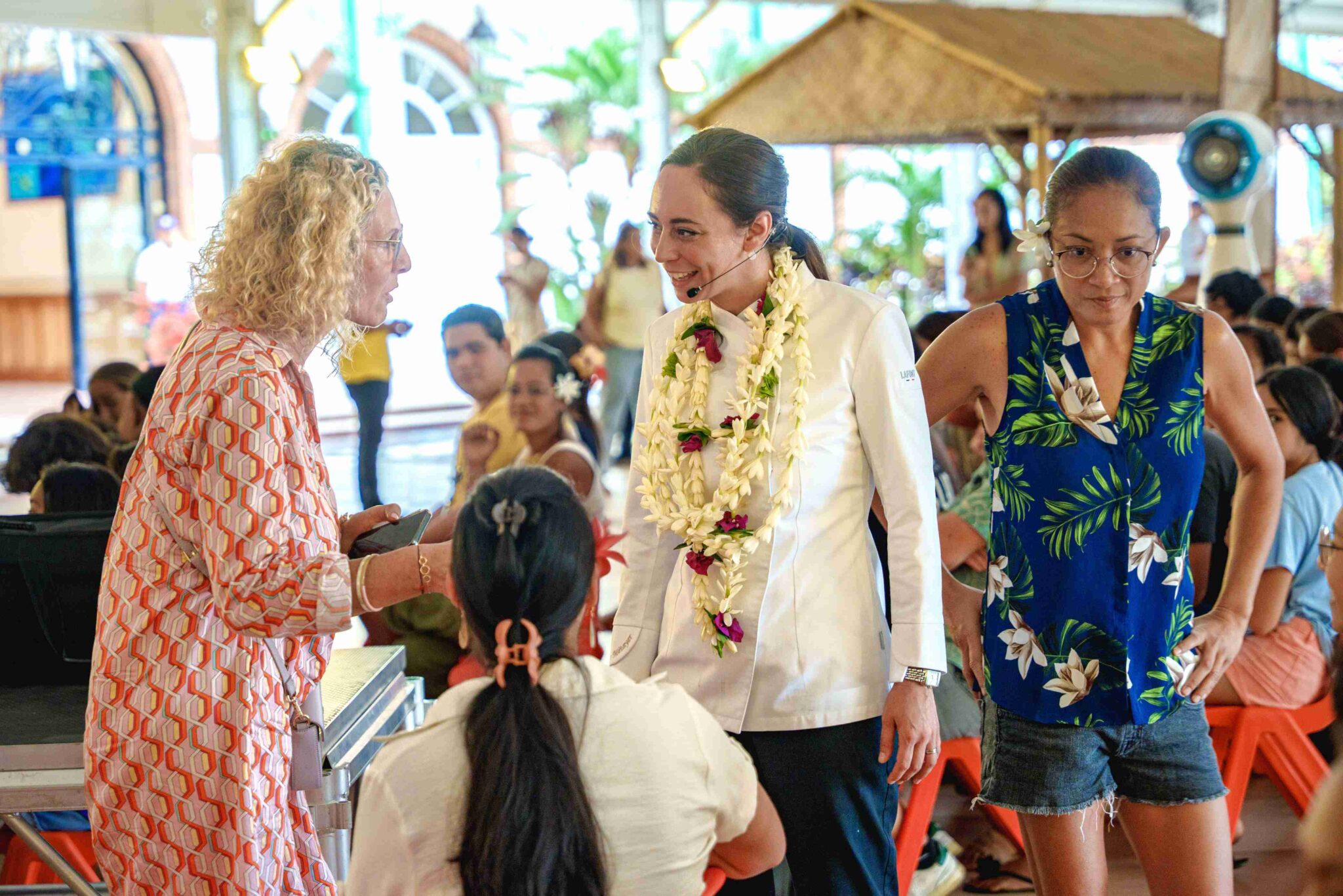 La matinée a aussi été marquée par un moment ludique et fédérateur : une battle culinaire opposant le Président de la Polynésie française, Moetai Brotherson, et Miss Tahiti 2025, Hinaupoko Devèze, accompagnés de deux élèves. Sous l’œil attentif de Nina Métayer, les équipes ont rivalisé de créativité autour d’une pavlova colorée, concluant l’épreuve sur une égalité symbolique.